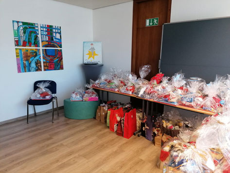 Die Augen von Kirsten Allgayer wurden immer größer, als die Päckchen immer mehr wurden. Und so herrscht hier bei uns im Büro bereits Weihnachtsstimmung, und unsere Kaffee- und Teevorräte für Mitarbeiter*innen und Gäste sind gut gefüllt. Unsere ehrenamtlichen Begleiter*innen werden die Päckchen nun zeitnah bei den Familien vorbeibringen und so ganz bestimmt, wie von den Chopper-Ladies gewünscht, Kinderaugen zum Leuchten bringen.